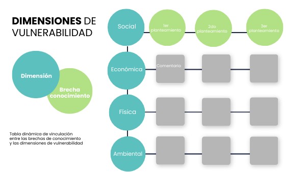 Tabla dinámica de vinculación entre las brechas de conocimiento y las dimensiones de vulnerabilidad