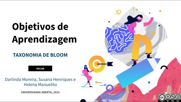 O REA Objetivos de Aprendizagem: Taxonomia de Bloom, de Darlinda Moreira, Susana Henriques e Helena Manuelito, é disponibilizado através de uma licença CC BY NC SA.