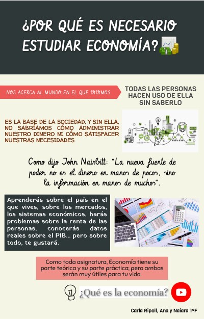 Aprenderás sobre el país en el que vives, sobre los mercados, los sistemas económicos, harás problemas sobre la renta de las personas, conocerás datos reales sobre el PIB... pero sobre todo, te gustará.