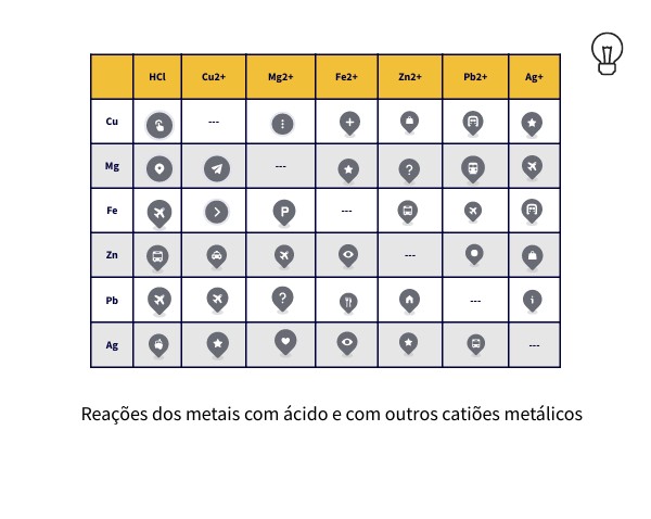 Reações dos metais com ácido e com outros catiões metálicos