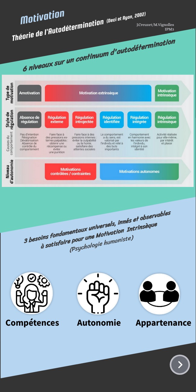 3 besoins fondamentaux universels, innés et observables à satisfaire pour une Motivation Intrinsèque (Psychologie humaniste)