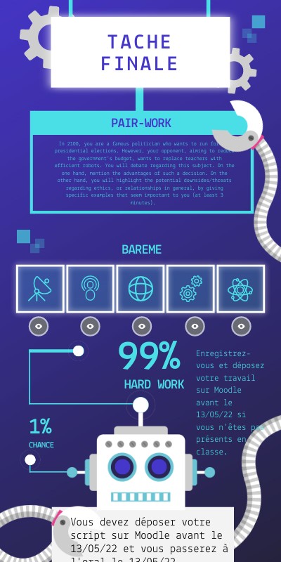 Enregistrez-vous et déposez votre travail sur Moodle avant le 13/05/22 si vous n'êtes pas présents en classe.