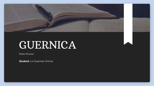 L'oeuvre dénonce et proteste contre le bombardement de la ville basque, Guernica. Cette immense toile chargée de symboles, montre un peuple martyrisé.