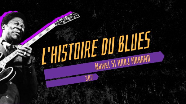 Origine du blues : Le blues est un style de musique vocale et instrumentale trouvant ses racines dans le chants des esclaves américain qui exprimait leur peine au travail. D'ou l'expression « avoir le blues » . Il est impossible de définir quand ce style est apparu mais le terme blues a été utilisé pour la première fois en 1901 par un archéologue qui décrivit cette musique ainsi. Le premier enregistrement du blues quand à lui date de 1920 par Mamie Smith Composition du blues : A l'origine le blues était un style de musique chanté uniquement a capella mais par la suite vint 3 instruments devenue typique du blues : La guitare acoustique, le piano et l'harmonica. La structure du blues est souvent la même : 3 accords joué dans un ordre précis qui dure 12 mesures de 4 temps on appelle ça la « grille blues » cette grille est souvent joué par une guitare ou un piano qui sert de rythmique au blues. Par dessus cette rythmique il y a souvent une improvisation joué par une autre guitare ou un harmonica. Concernant le chant, les paroles sont souvent tristes et contestatrice. Rhythm and blues : Le Rhythm and blues est un style musical dérivé du blues qui a commencé à apparaître en 1940, il reprend exactement les mêmes caractéristiques que le blues mais plus rythmés et avec un tempo plus rapide, les guitares acoustiques sont également laissés de coté pour faire place aux guitares électriques ce style sera le précurseur du rock 'n' roll L'influence du blues : Le blues a fait naître de nombreux styles musicaux puisque l'on peut retrouvé des traces de blues dans le rock 'n'roll, le hard rock, la pop et même dans le rap qui peut avoir des similitudes au niveau des paroles. Il y a également de nombreux groupe majeurs des années 60/70 comme les who ou jimi hendrix qui affirment s être fortment inspiré du blues pour leurs musique les rolling stones par exemple ont trouvé leur nom en s'inspirant du titre d'une chanson de muddy waters un célèbre bluesman.
