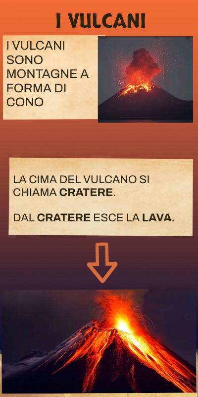 LA CIMA DEL VULCANO SI CHIAMA CRATERE. DAL CRATERE ESCE LA LAVA.