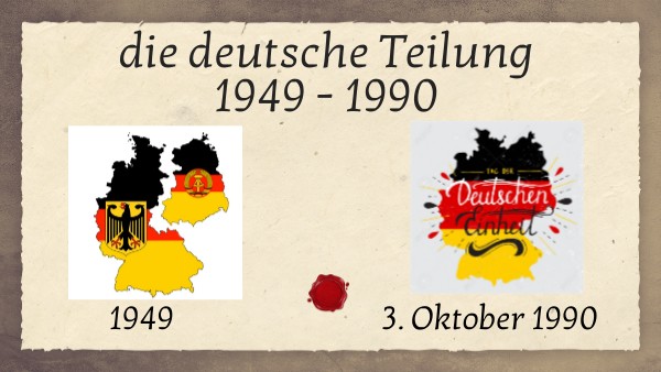 Am 3. Oktober 1990 unterschrieben die 2 deutschen Staaten (BRD + DDR) und die 4 Allieerten (USA, UdSSR, GB, F) den 2 + 4 = 1 Vertrag.
