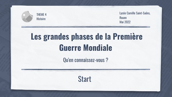 - Surlignez l'année de début et l'année de fin de la Première Guerre Mondiale sur la frise chronologique qui vous a été distribuée ;- Placez l'événement déclencheur du conflit ; - Indiquez quand ont eu lieu les révoltes dans les Balkans ; - Indiquez les dates de création de la Triple Entente et de la Triple Alliance.