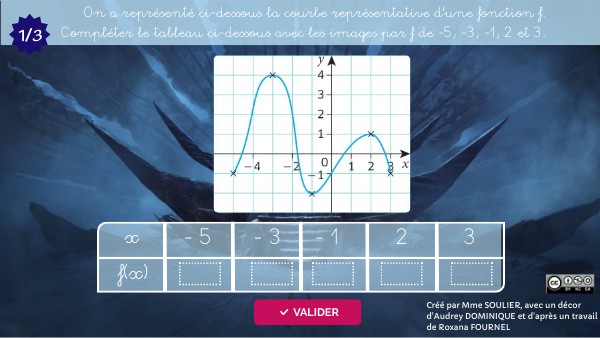Compléter le tableau ci-dessous avec les images par f de -5; -3; -1; 2 et 3.