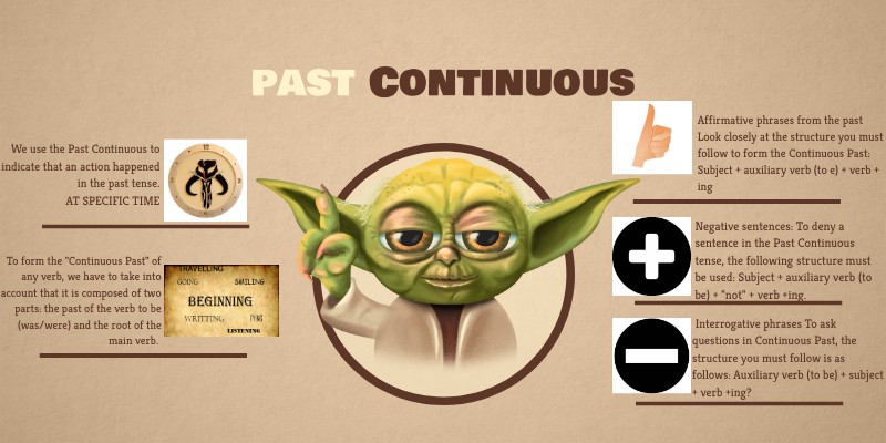 Affirmative phrases from the past Look closely at the structure you must follow to form the Continuous Past: Subject + auxiliary verb (to e) + verb + ing