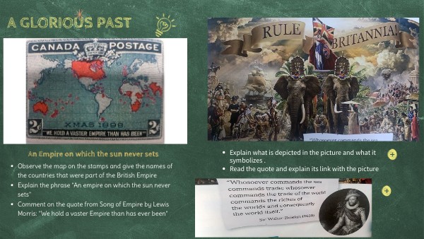 - Observe the map on the stamps and give the names of the countries that were part of the British Empire