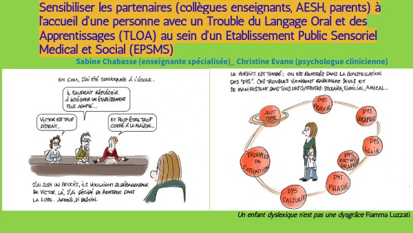 Sensibiliser les partenaires (collègues enseignants, AESH, parents) à l'accueil d'une personne avec un Trouble du Langage Oral et des Apprentissages (TLOA) au sein d'un Etablissement Public Sensoriel Médical et Social (EPSMS)