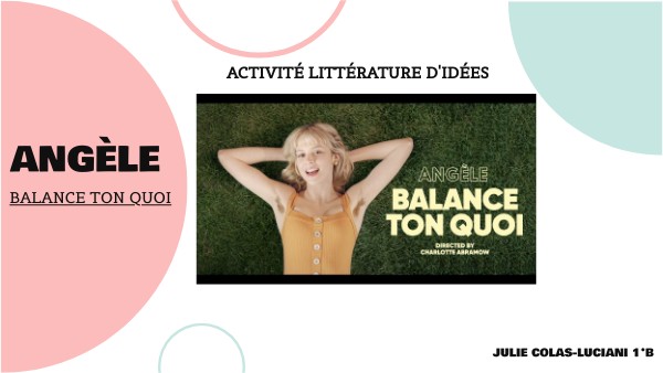 - Selon moi, Angèle illustre parfaitement le sexisme dans son titre "Balance ton quoi".