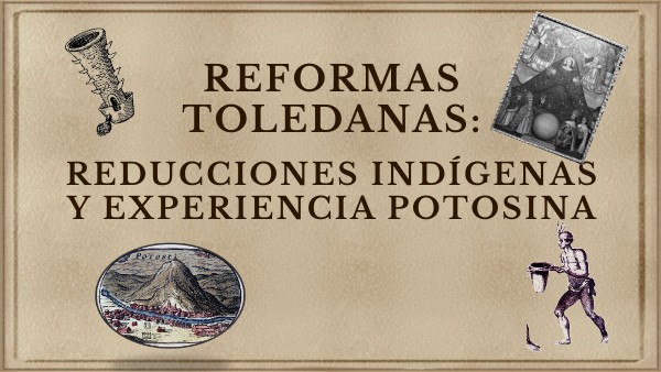 Bakewell, Peter 1989. Mineros de la Montaña Roja. Alianza Editorial, Madrid. Merluzzi, Manfredi 2014. Gobernando los Andes. Francisco de Toledo virrey del Perú (1569-1581). Fondo Editorial Pontificia Universidad Católica del Perú, Lima. Mumford, Jeremy 2017. La reducción toledana en el Perú y el Alto Perú, 1569-1575. En A. Saito, C. Rosas lauro (eds.), Reducciones. La concentración forzada de las poblaciones indígenas en el Virreinato del Perú. Pontificia Universidad/National Museum of Ethnology, Lima Salazar Soler, Carmen 2002. La Villa Imperial de Potosí, cuna del mestizaje (Siglos XVI y XVII). En G. Boccara (ed.); Colonización, mestizaje y resistencia en las Américas (Siglos XVI.XX). IFEA, Abya Yala. Perú-Ecuador. Stern, Steve 1982. Los Pueblos Indígenas del Perú y el Desafío de la Conquista Española. Alianza, Madrid.