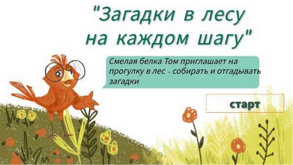 Смелая белка Том приглашает на прогулку в лес - собирать и отгадывать загадки