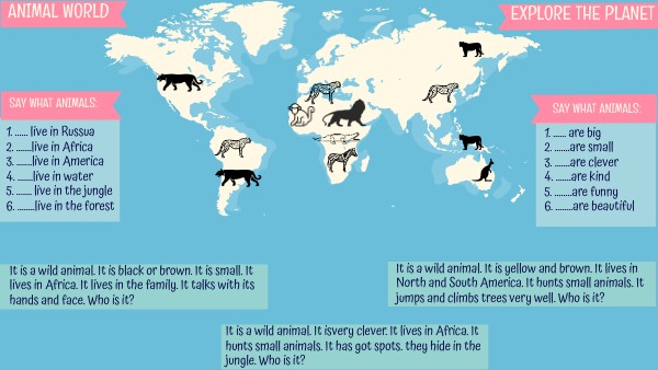 1. ...... live in Russua 2. .......live in Africa 3. .......live in America 4. .......live in water 5. ....... live in the jungle 6. ........live in the forest