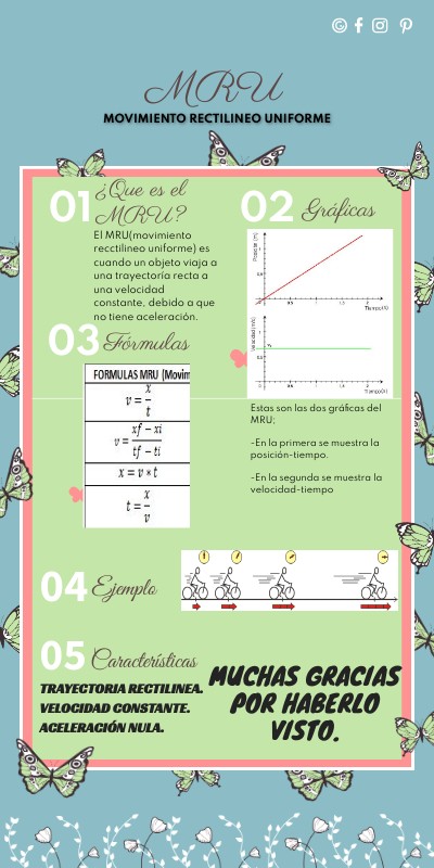 El MRU(movimiento recctilineo uniforme) es cuando un objeto viaja a una trayectoría recta a una velocidad constante, debido a que no tiene aceleración.