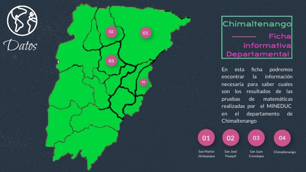 En esta ficha podremos encontrar la información necesaria para saber cuales son los resultados de las pruebas de matemáticas realizadas por el MINEDUC en el departamento de Chimaltenango
