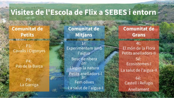 Seguit d'actuacions que realitzem conjuntament amb el Camp d'Aprenentatge de Flix, el Grup de Natura Freixe i la Reserva Natural de Sebes i Meandre de Flix.