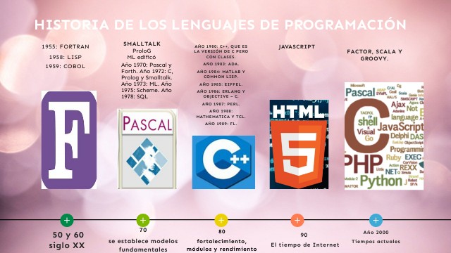 Año 1970: Pascal y Forth. Año 1972: C, Prolog y Smalltalk. Año 1973: ML. Año 1975: Scheme. Año 1978: SQL