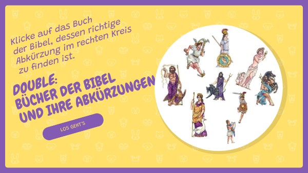 Klicke auf das Buch der Bibel, dessen richtige Abkürzung im rechten Kreis zu finden ist.