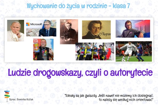 Kto może być autorytetem? Jakie cechy posiada autorytet? Kto jest dla Ciebie autorytetem? Dlaczego wybrałeś tę osobę? Co cenisz w niej najbardziej?