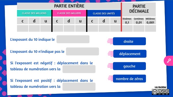 Si l'exposant est positif : déplacement dans le tableau de numération vers la