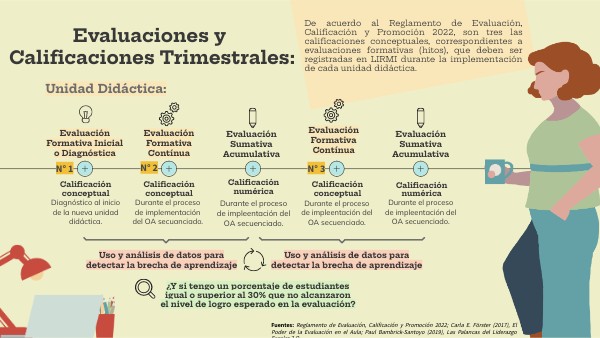 Fuentes: Reglamento de Evaluación, Calificación y Promoción 2022; Carla E. Förster (2017), El Poder de la Evaluación en el Aula; Paul Bambrick-Santoyo (2019), Las Palancas del Liderazgo Escolar 2.O.