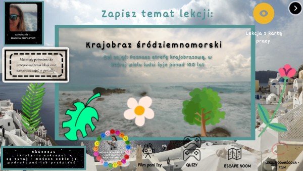 Zabierzcie od nauczyciela pocięte obrazki dotyczące strefy krajobrazowej śródziemnomorskiej. Przygotujcie kreatywną notatkę - obrazki + tekst lub z filmem uzupełnijcie notatkę okienkową.