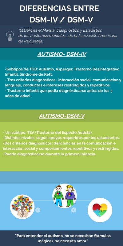 -Subtipos de TGD: Autismo, Asperger, Trastorno Desintegrativo Infantil, Síndrome de Rett. - Tres criterios diagnósticos : interacción social, comunicación y lenguaje, conductas e intereses restringidos y repetitivos. - Trastorno infantil que podía diagnósticarse antes de los 3 años de edad.