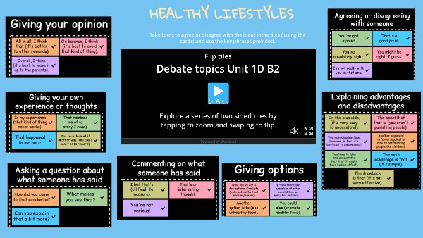 Take turns to agree or disagree with the ideas inthe tiles ( using the cards) and use the key phrases provided.