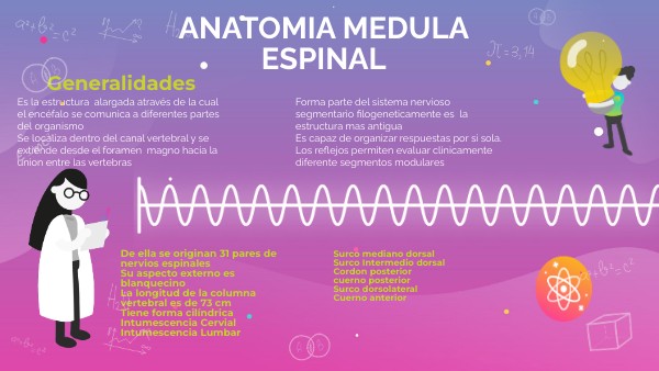 Es la estructura alargada através de la cual el encéfalo se comunica a diferentes partes del organismoSe localiza dentro del canal vertebral y se extiende desde el foramen magno hacia la union entre las vertebras
