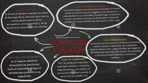 ZONADE RE ENVASADOSSe encuentra en los almacenes en los que se requiere volver a envasar o repaletizar -en unidades de distinto tamaño como cargas recibidas, por exigencia del sistema de almacenaje, por razones de salubridad o simplemente para etiquetar los productos recibidos.