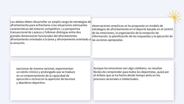 eaccionar de manera racional, experimentan un estrés crónico y prolongado que se traduce en un empeoramiento de la capacidad de ejecución e incluso en la aparición de burnout y abandono deportivo.