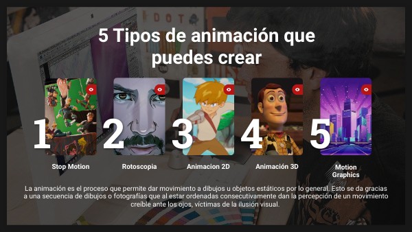 La animación es el proceso que permite dar movimiento a dibujos u objetos estáticos por lo general. Esto se da gracias a una secuencia de dibujos o fotografías que al estar ordenadas consecutivamente dan la percepción de un movimiento creíble ante los ojos, víctimas de la ilusión visual.