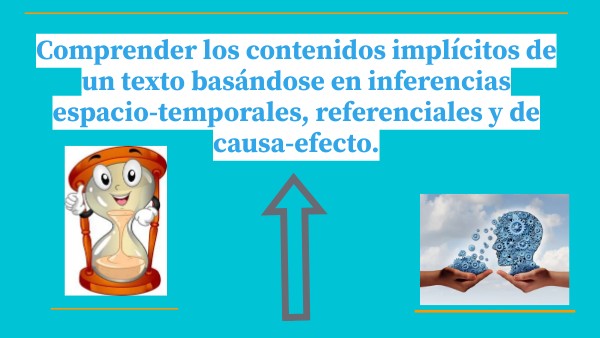 Comprender los contenidos implícitos de un texto basándose en inferencias espacio-temporales, referenciales y de causa-efecto.