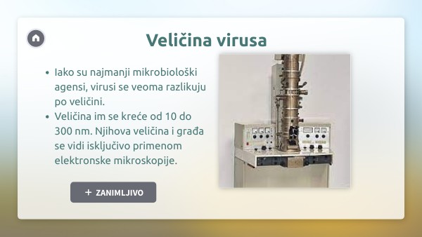 - Veličina im se kreće od 10 do 300 nm. Njihova veličina i građa se vidi isključivo primenom elektronske mikroskopije.