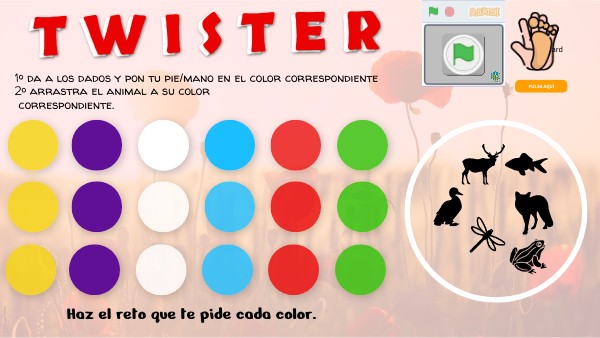 1º da a los dados y pon tu pie/mano en el color correspondiente 2º arrastra el animal a su color correspondiente.