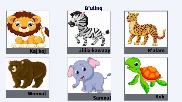 Lotería de animales salvajes en q'eqchi'