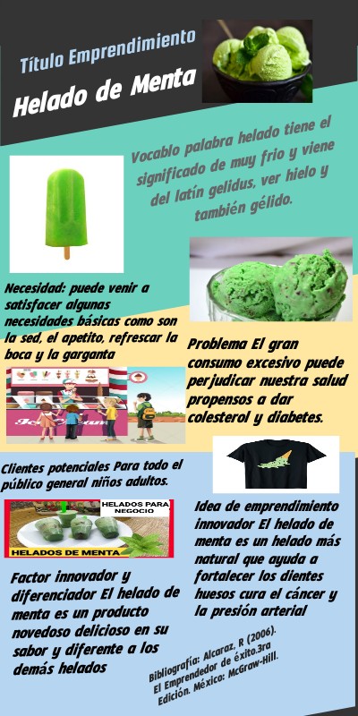 Idea de emprendimiento innovador El helado de menta es un helado más natural que ayuda a fortalecer los dientes huesos cura el cáncer y la presión arterial