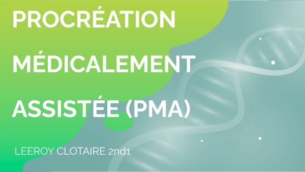 La Procréation Médicalement Assistée est un ensemble de trois techniques de fécondation controllées utilisées afin de concevoir un enfant. Le but est d'aider les couples ne pouvant pas ou ayant des difficutés a enfanter pour diverse raison. Pour celà les gamettes sont récoltées, fécondées et ensuite implantés dans l'utérus.
