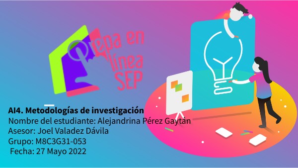 AI4. Metodologías de investigaciónNombre del estudiante: Alejandrina Pérez Gaytán Asesor: Joel Valadez Dávila Grupo: M8C3G31-053 Fecha: 27 Mayo 2022