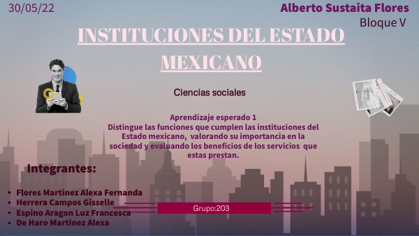 Aprendizaje esperado 1 Distingue las funciones que cumplen las instituciones del Estado mexicano, valorando su importancia en la sociedad y evaluando los beneficios de los servicios que estas prestan.