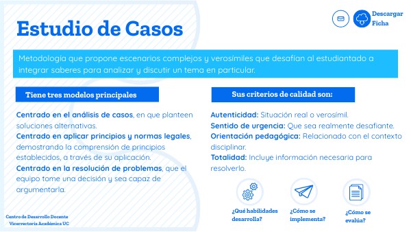 Metodología que propone escenarios complejos y verosímiles que desafían al estudiantado a integrar saberes para analizar y discutir un tema en particular.
