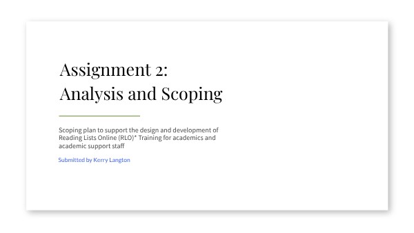 Scoping plan to support the design and development of Reading Lists Online (RLO)* Training for academics and academic support staff