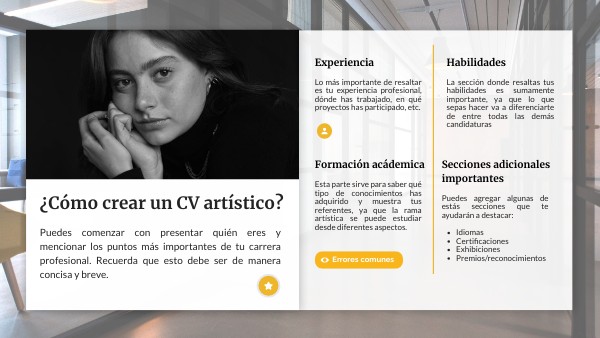 Esta parte sirve para saber qué tipo de conocimientos has adquirido y muestra tus referentes, ya que la rama artística se puede estudiar desde diferentes aspectos.