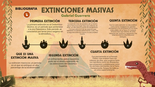 La primera extinción es el Ordovícico-Silúrico, es un periodo que pertenece a la era Paleozoica. Este periodo se caracterizó por tener poco oxígeno en la atmósfera,