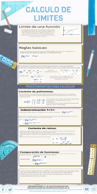 problemasyecuaciones. (s. f.-b). Cálculo de límites paso a paso. problemasyecuaciones.com. Recuperado 29 de octubre de 2021, de https://www.problemasyecuaciones.com/limites/calculo-limites-explicados-metodos-reglas-procedimientos-indeterminaciones-grados-infinito-resueltos.html