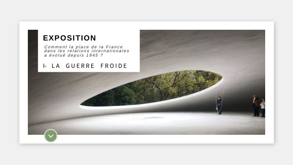 Nous sommes en 1992, vous travaillez pour un musée. On vous demande d'organiser avec vos collègues une exposition, afin de faire une grande rétrospective sur la place de la France dans les relations internationales. Votre équipe doit s'occuper de la salle sur la Guerre froide : en effet, depuis quelques semaines, l'URSS s'est disloquée et la Guerre froide est terminée.