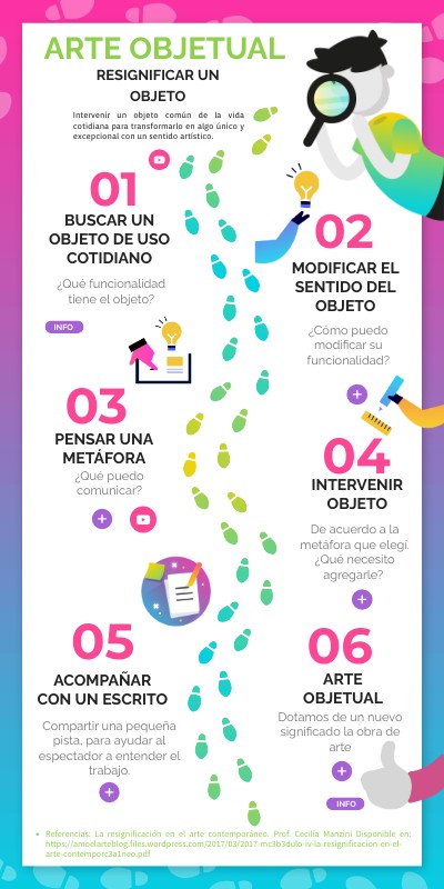 - Referencias: La resignificación en el arte contemporáneo. Prof. Cecilia Manzini Disponible en: https://amoelarteblog.files.wordpress.com/2017/03/2017-mc3b3dulo-iv-la-resignificacion-en-el-arte-contemporc3a1neo.pdf