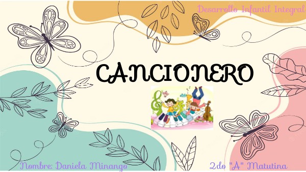 1. Buenos dias 2. Bienvenido seas 3. Hello 4. ¿Cómo te llamas? 5. Las 3 palmas 6. Buenos dias/ cómo están 7. Una tras de otra las hormigas 8. Subo hasta el cielo bajo para el suelo 9. Pipo el Delfin 10. Los pollitos 11. Pesa la trompa 12. Doña coneja 13. Allá en el rancho grande 14. Los trencitos van y vienen 15. Cuento voy a cazar un tigre 16. Juego de los sapitos 17. La luna que sabia a queso 18. La luna que sabia a queso 19. Allá viene la gallina 20. Iba un pollito para la escuela 21. Letra Himno al ITSCO